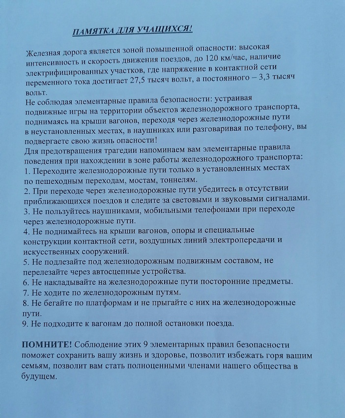 В целях формирования у несовершеннолетних культуры безопасного поведения на объектах железнодорожного транспорта в пришкольном лагере намечено проведение разъяснительных бесед с несовершеннолетними о правилах безопасного поведения при нахождении вблизи железнодорожных путей и на пассажирских платформах.