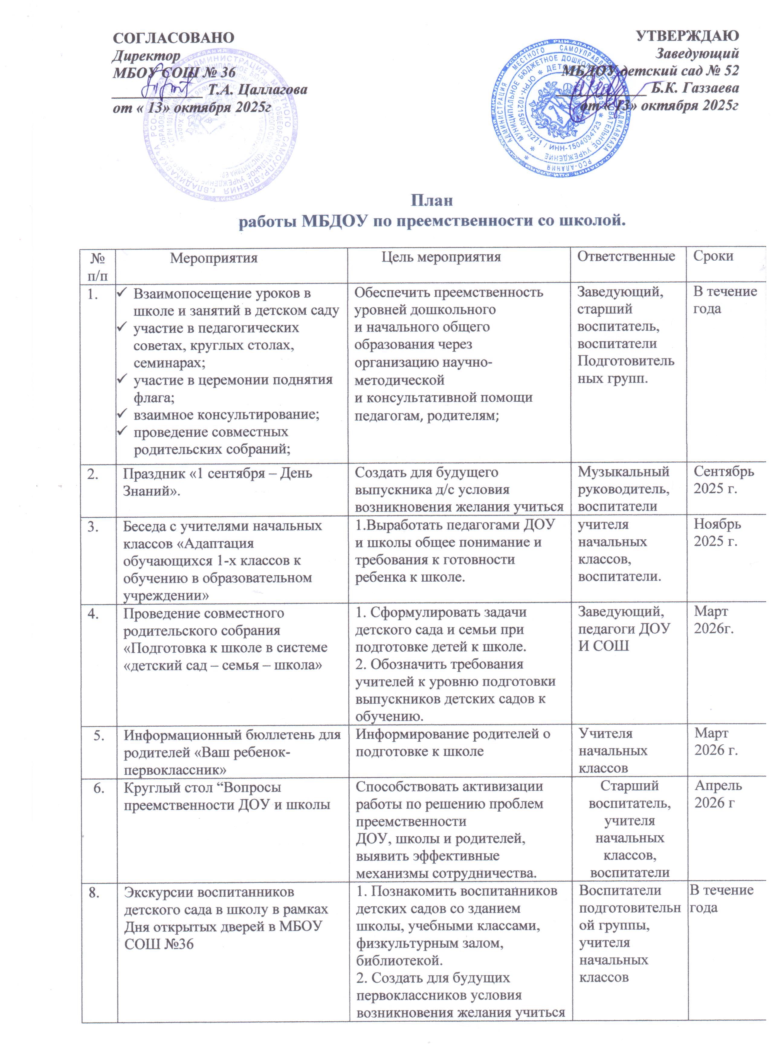 План работы по преемственности МБДОУ 52 и СОШ№36
